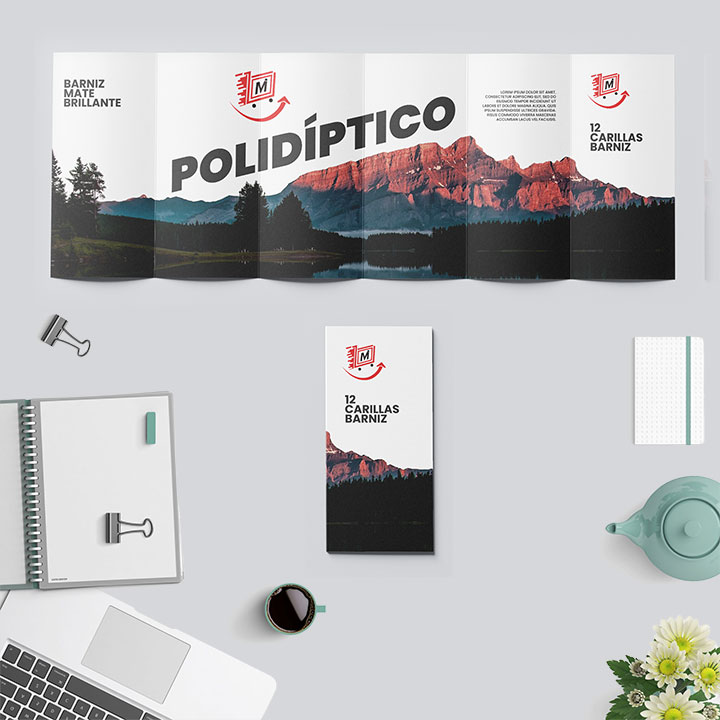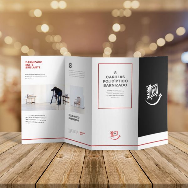 Ponle un toque diferente a tu contenido y barniza toda tu información necesaria y útil dentro de una misma impresión con nuestros polidípticos desde 8 hasta 12 carillas de la manera más eficaz, organizada y sencilla posible, tus clientes potenciales verán lo ingenioso y comunicativo que es tu empresa o marca y querrán saber más de ti. Nuestros folletos te llegarán plegados, impecables y listos para usar, la facilidad para manipular el mismo, te permitirán ofrecer una información comercial más detallada, como la carta de servicios, características de un producto en específico, testimonios de clientes satisfechos o la información que desee hacer llegar a su clientela potencial.